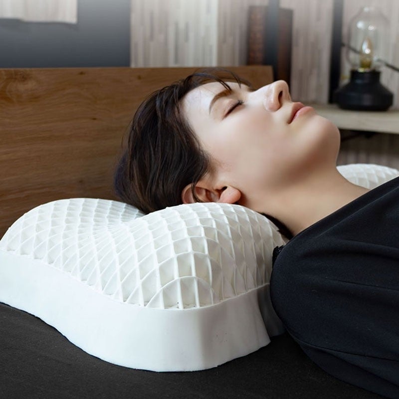OLOの最大の特徴は、TPEと格子状のオープン構造の組み合わせです。この設計により、体圧を瞬時に分散させ、まるで水に浮かぶような無重力体験に近い寝心地が実現されます。頭部の重さが広範囲に分散されることで、心地よいフィット感を提供します。