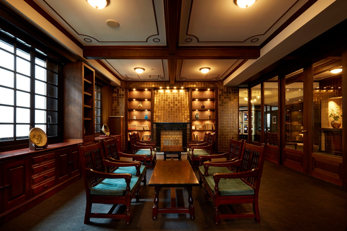 松本民芸家具を中心に各地の民芸品と出会えるロビー談話室。そこにいるだけでそっと民藝の世界に引き込まれる空間は、誰もが心落ち着ける場所となる。