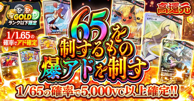 最低1VC(1円相当)から遊べるオリパや遊んだ分以上のVC(ポイント)を獲得できるアド確オリパなどを公開しています。
