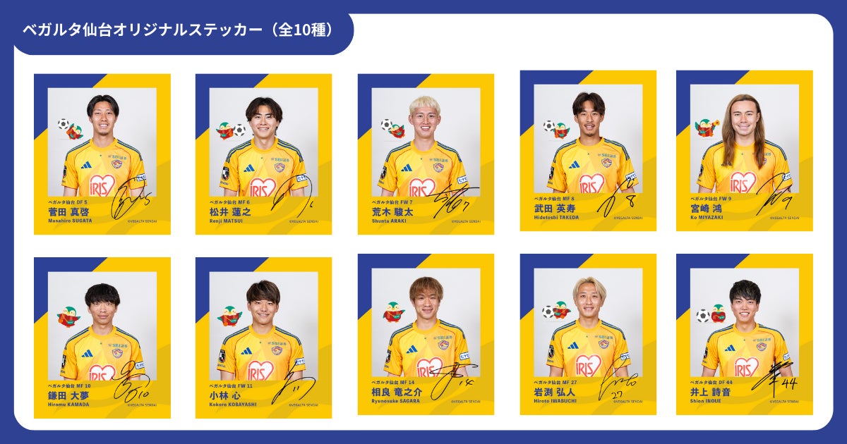 ベガルタ仙台のオリジナルステッカー(全10種)をご用意。選手それぞれのサイン入りです。