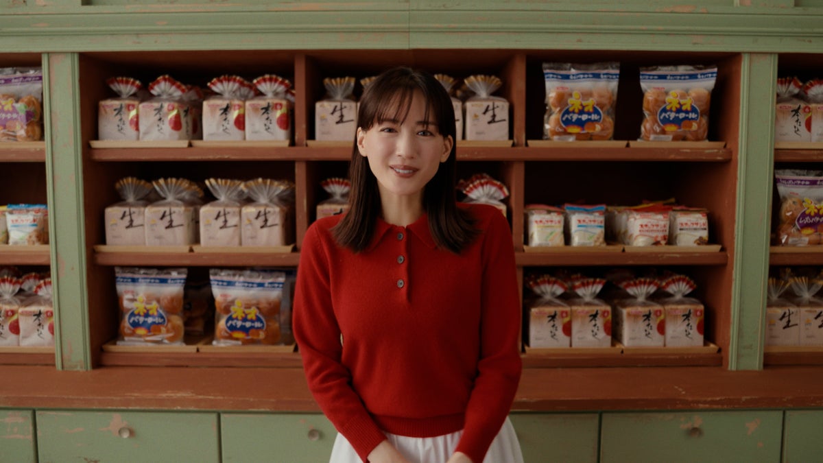 「フジパン」の看板が目印の、町のパン屋さん。中に入ると、綾瀬はるかさんがお出迎え。フジパンのパンがずらーっと並んだ後ろの棚が開くと…ワクワクするようなパン工場が広がります!ネオバタくんの窯で焼き上がるロールパンや、ポーン!と飛び出す巨大なトースト。”みんなを楽しませちゃう製法”で作られたパンを抱え、自然と笑顔になっちゃう綾瀬はるかさんです。