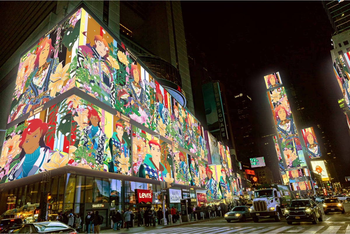 「Midnight Moment」は 2012 年にTimes Square Artsが始動した、ニューヨークの象徴的空間をキャンバスに変えるパブリックアートプロジェクト。過去にはデイヴィッド・ホックニーやオラファー・エリアソンなど、世界のトップアーティストがこの舞台に立ち、作品を発表してきました。