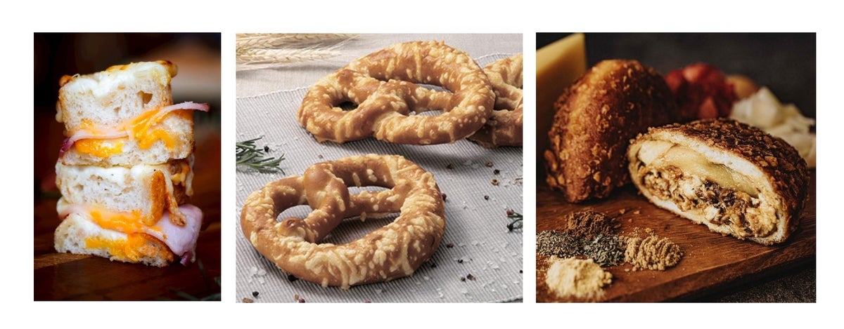 (写真左)クロックムッシュ 「TERRAS BAKERY/ 尼崎市」、(写真中)チーズプレッツェル 「ぱん屋リューココリーネ/京都市、(写真右)チーズカレーパン「淡路島金賞カレーパン サンハート/(淡路市)」