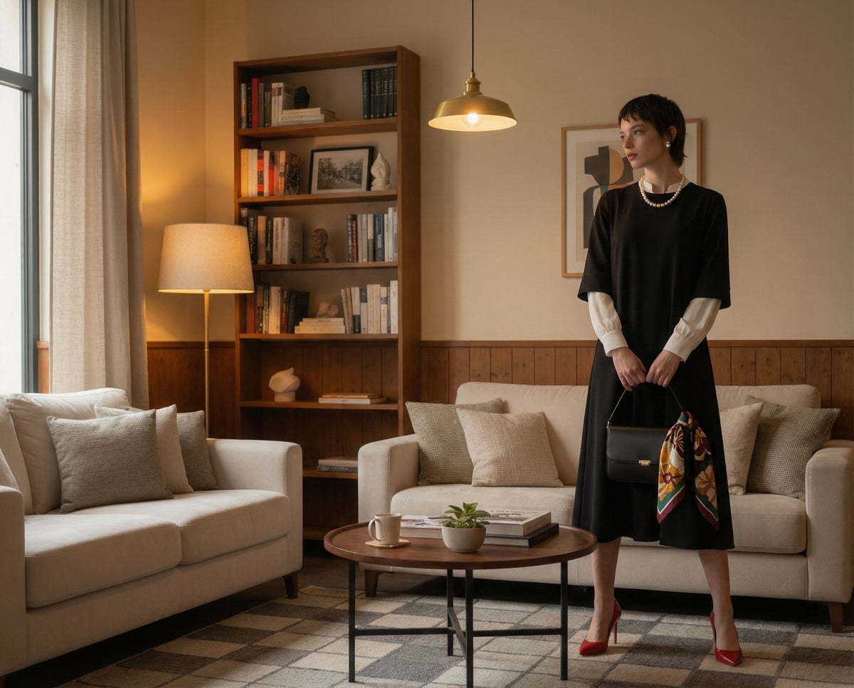 画像:AIチャットNano Banana 3に渡した女性の画像1枚と、衣装やアクセサリーなどの写真(全てAIで生成)