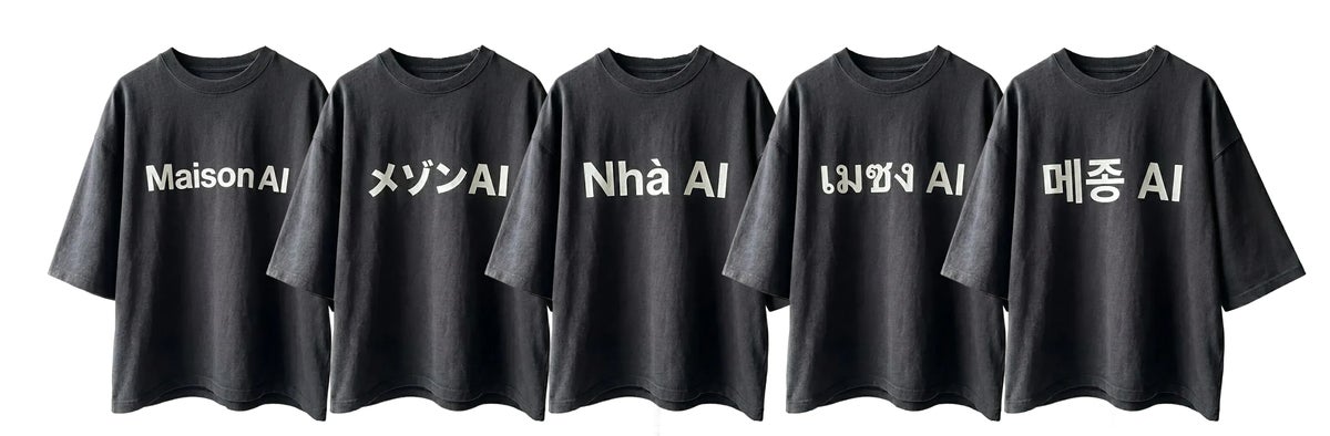 画像:多言語展開された「Maison AI」ロゴTシャツ