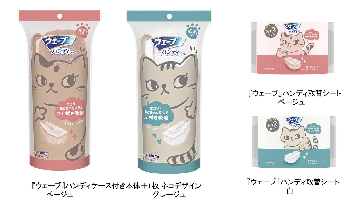 ユニ・チャーム株式会社(代表取締役 社長執行役員:高原 豪久)は、手軽に掃除ができ、ひと拭きでホコリを吸着できる、かわいい猫デザインの『ウェーブ』ハンディワイパーを、2026年3月3日に全国で期間限定品として発売します。