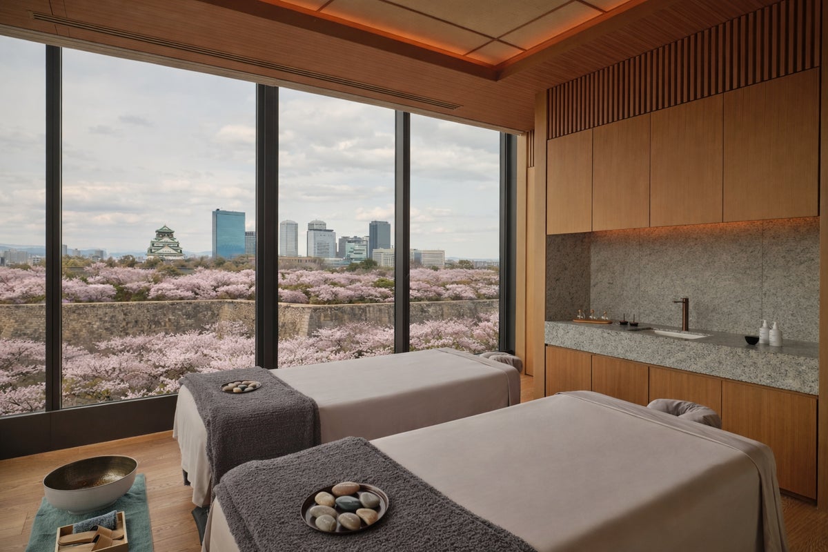 桜の季節を五感で味わう、特別なスパプランも登場します。大阪城公園の桜並木を望むトリートメントルームでご体験いただく、期間限定のプランです。始まりのリチュアルは、桜風味の甘酒を加えたフットバスから。やわらかな香りに包まれながら、ゆっくりと足元から緊張をほどいていきます。続くシグネチャーマッサージで、心身を深くリラックスへと導きます。トリートメントの後は、爽やかな桜の香りのお茶とともに、目の前に広がる春景色をご堪能ください。五感で味わう、やさしく満ちるひとときをお届けいたします。
