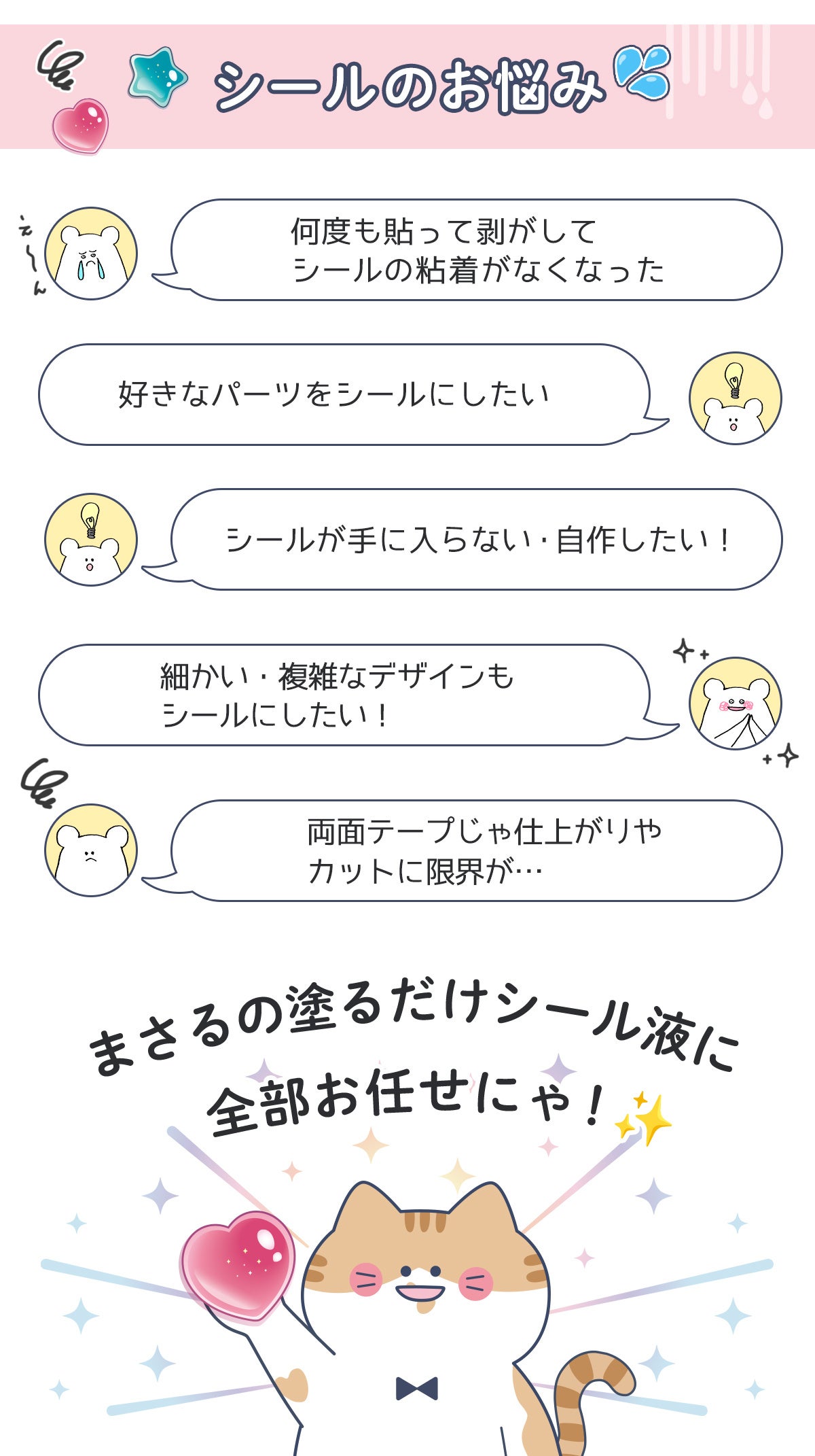 「手軽に自分だけのオリジナルシール作りを楽しんでもらいたい!」 「粘着力が弱まった、大切なお気に入りのシールの命を吹き返したい!」