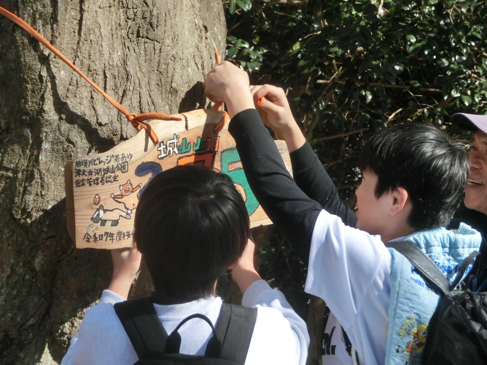 今回、市立桜台小学校の5年生が相模川ビレッジ若あゆでの宿泊体験学習で、市内緑区津久井城山の山頂に、自分たちが作った山頂標識を設置する計画を立てました。