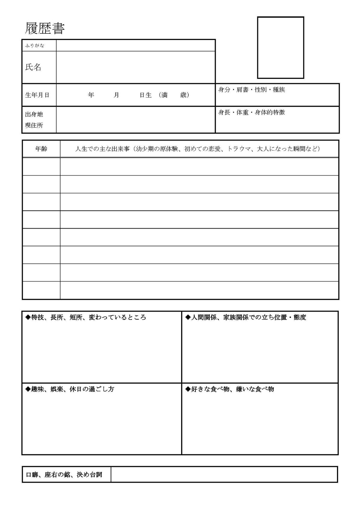ただし、一般部門/ネーム部門、データ原稿/アナログ原稿/同人誌、どの部門・応募形式でも「メインキャラクター2人の履歴書」を必ずご提出ください。
