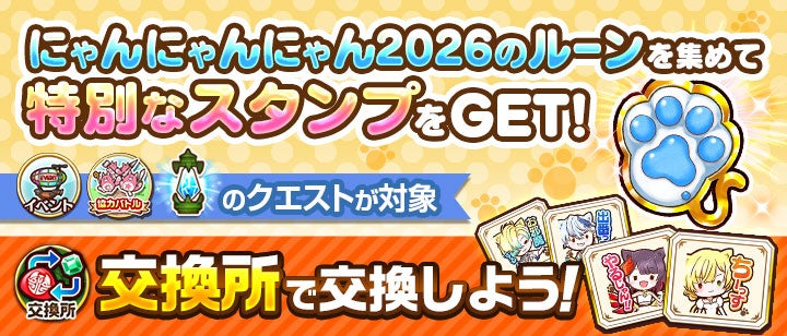 期間中、『白猫』ゲーム内のクエストをクリアすると、「にゃんにゃんにゃん2026のルーン」を獲得できます。