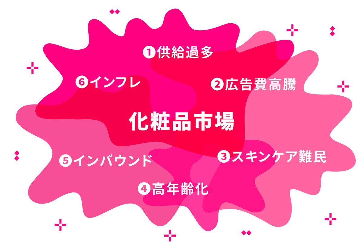 化粧品業界は、OEM工場に製造依頼をすれば販売メーカーになる事が可能で、自社では企画・マーケティングに専念し、製造はOEM工場に任せる分業制が進んでいます。特に近年、SNS発のブランド(D2C)や異業種からの新規参入が増加、そのほとんどが工場なしの形態をとる事で参入障壁が低いことから、化粧品市場の広告入札者は増加し広告費が高騰。インフレによる原価高騰に加え、スキンケア難民が溢れる供給過多の市場では、製品在庫を抱えるリスクが存在しています。