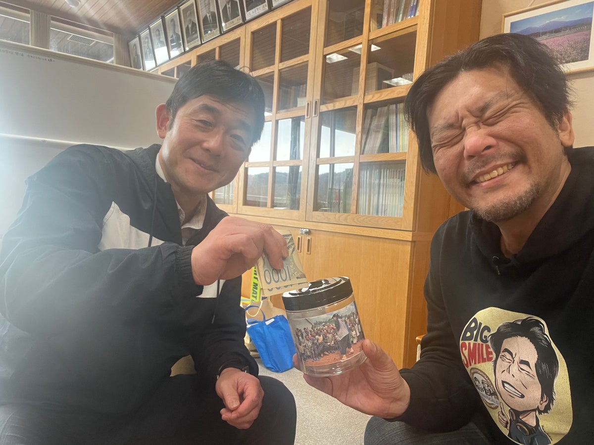 校長先生自らも募金に協力し、遊佐中の文房具を世界へ届ける応援をしてくれた
