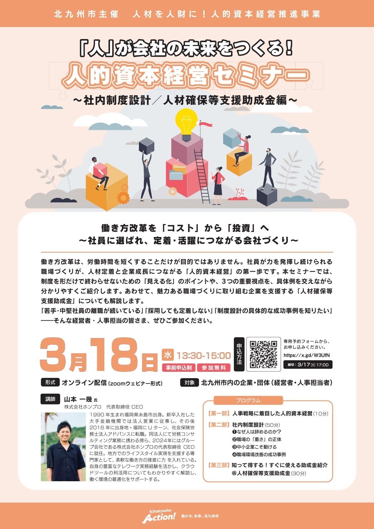 本セミナーでは、社員が力を発揮し続けられる職場づくりを軸に、人材の定着と企業成長につながる「人的資本経営」の考え方や、制度を形だけで終わらせないためのポイントや3つの重要視点を、