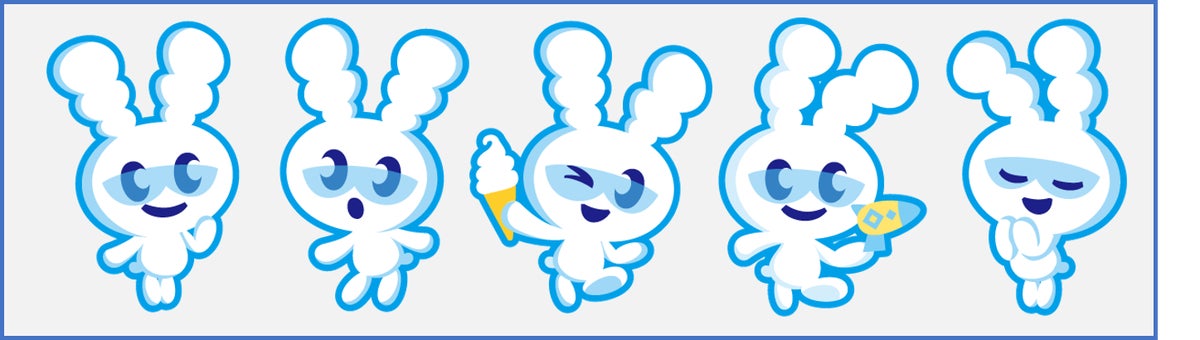 しおバニーちゃんはカラダがマシュマロでできており、手にもつおもちゃのレーザーガンで塩の結晶をお届けします。個包装の裏面のしおバニーちゃんはくちの形がそれぞれ「し」「お」「バ」「二」「ラ」になっています。 ぜひ裏面もチェックしてみてください。
