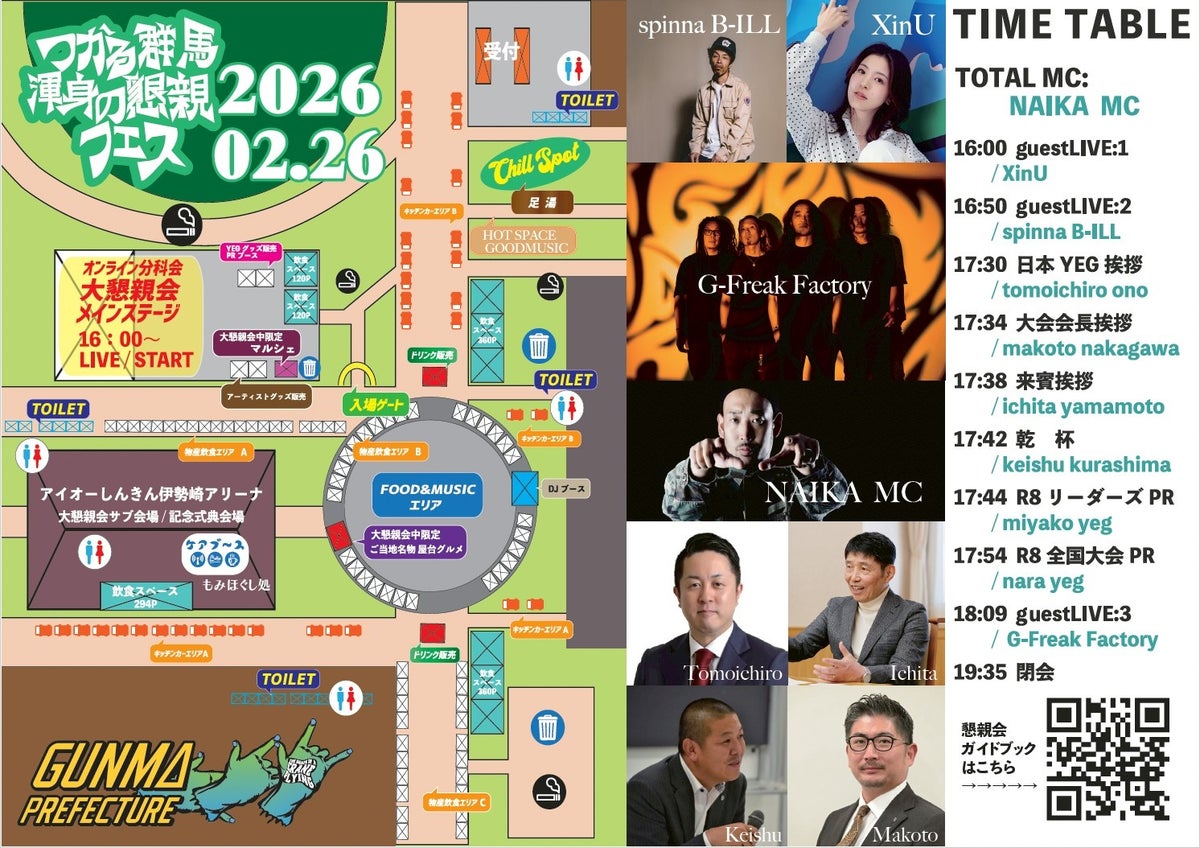 大会3日目(2月26日)には、アイオーしんきん伊勢崎アリーナおよび屋外会場を活用し、10,000名規模のフェス型大懇親会を開催いたします。