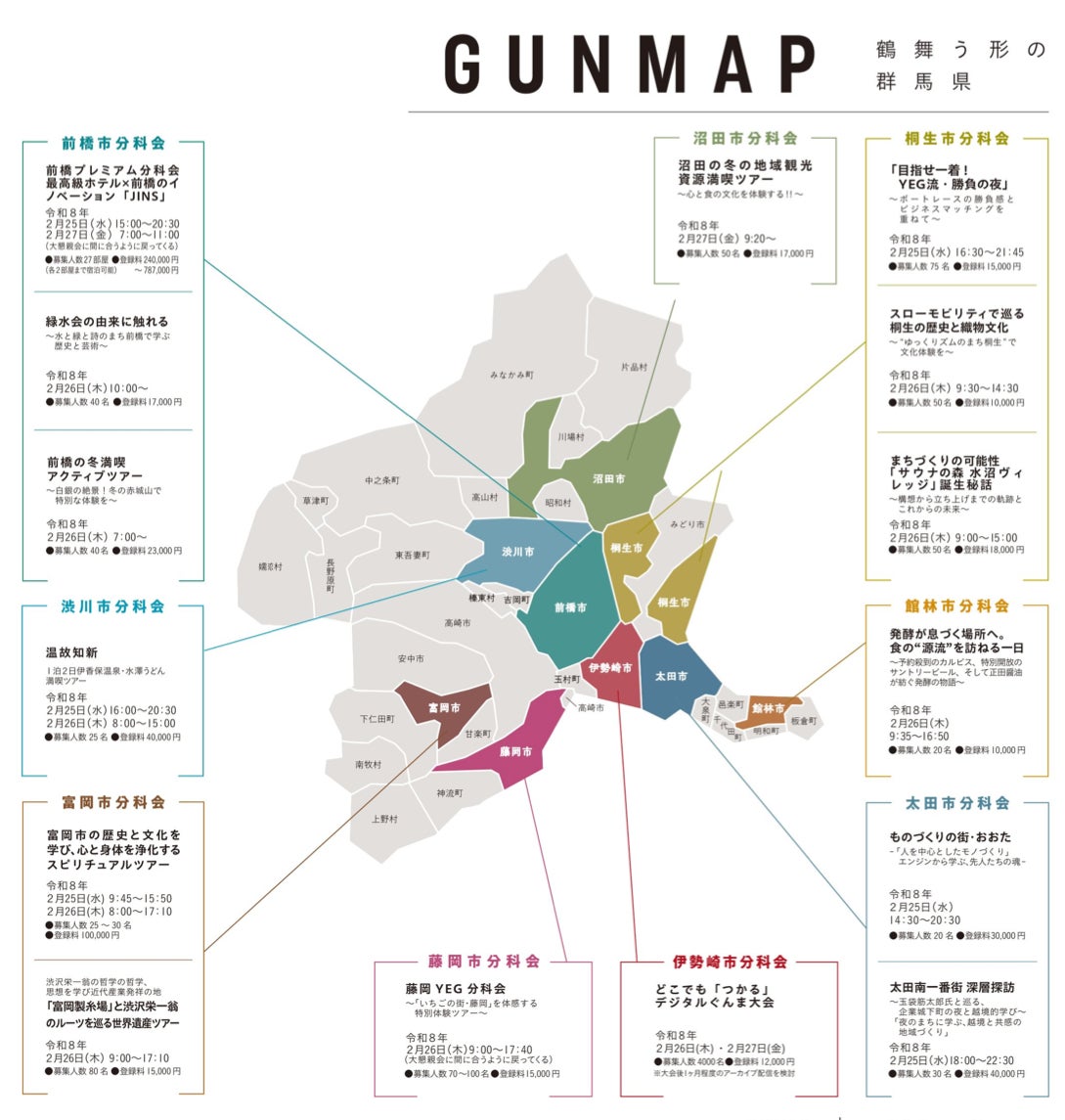 群馬県内の商工会議所青年部(YEG)が主体となり企画・運営を担うことで、「ALL GUNMA」体制による地域連携を体現するとともに、参加者が自らの地域へ持ち帰り、応用可能な知見を得られる場とします。