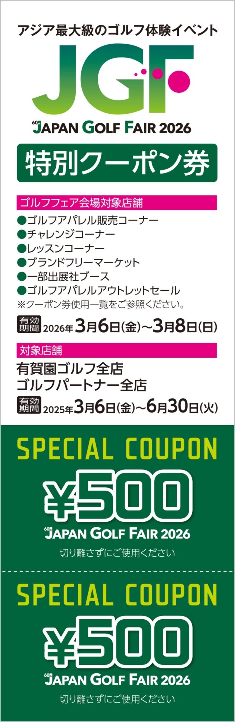 一般社団法人日本ゴルフ用品協会(略称:JGGA 会長:倉島隆夫)は、2026年3月6日(金)~8日(日)の3日間、パシフィコ横浜にてアジア最大級のゴルフ体験イベント「JAPAN GOLF FAIR 2026」(以下「JGF2026」)を開催いたします。今年の「JGF2026」は深堀圭一郎プロ・宮本勝昌プロ・宮里藍プロ・有村智恵プロなどのレジェンドプロから菅沼菜々プロ・松田鈴英プロ・藤田光里プロなどのレギュラーツアー現役プロまで、総勢60名以上のプロやゲストが来場し、メインステージや各ブースにおいて魅力的なイベントを実施いたします。