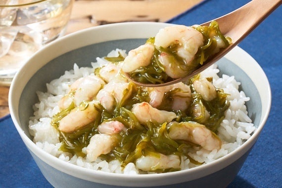 概要:プリプリの甘エビと、たっぷり入った三陸産めかぶの磯の香りが楽しめる丼のもとです。解凍してご飯に乗せるだけで、さっぱりとした味わいの丼が完成します。 お好みでわさびや青ネギをあえるのもおすすめです。