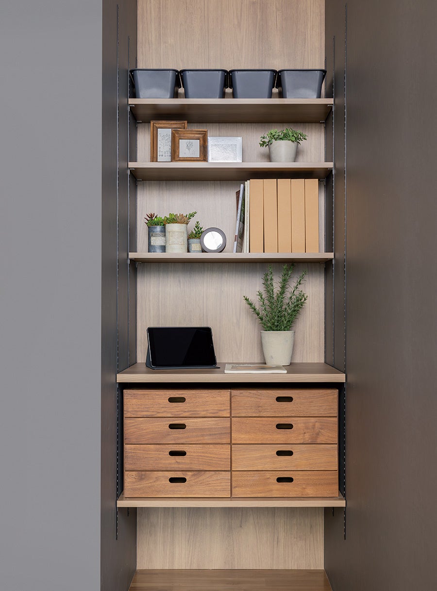 奥行は50mmピッチで、200mmから600mmまでの全9規格、幅は5mmピッチで250mmから1950mmまでの全341規格、カラーは全9色と圧倒的なサイズバリエーションをラインナップし、あらゆる空間に対応できます。
