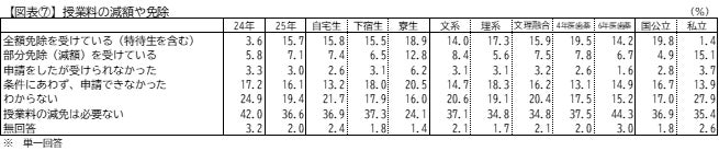 授業料の減額や免除