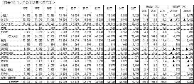 1か月の生活費<自宅生>