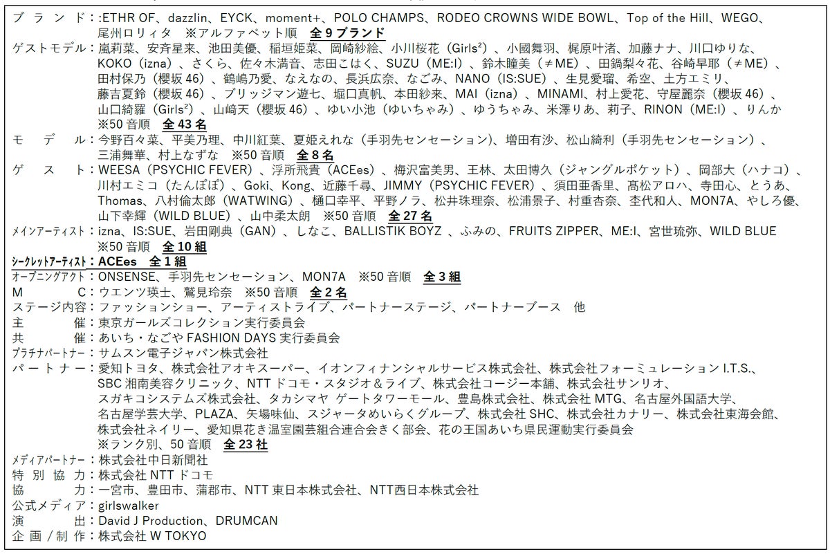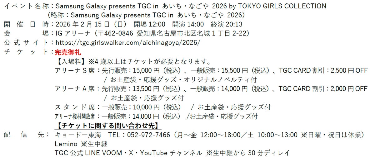 東京ガールズコレクション実行委員会(企画/制作:株式会社W TOKYO)は、2026年2月15日(日)にIGアリーナにて、『Samsung Galaxy presents TGC inあいち・なごや 2026 by TOKYO GIRLS COLLECTION』(TGC in あいち・なごや)を開催しました。