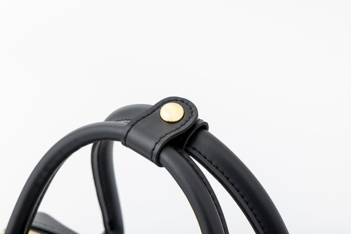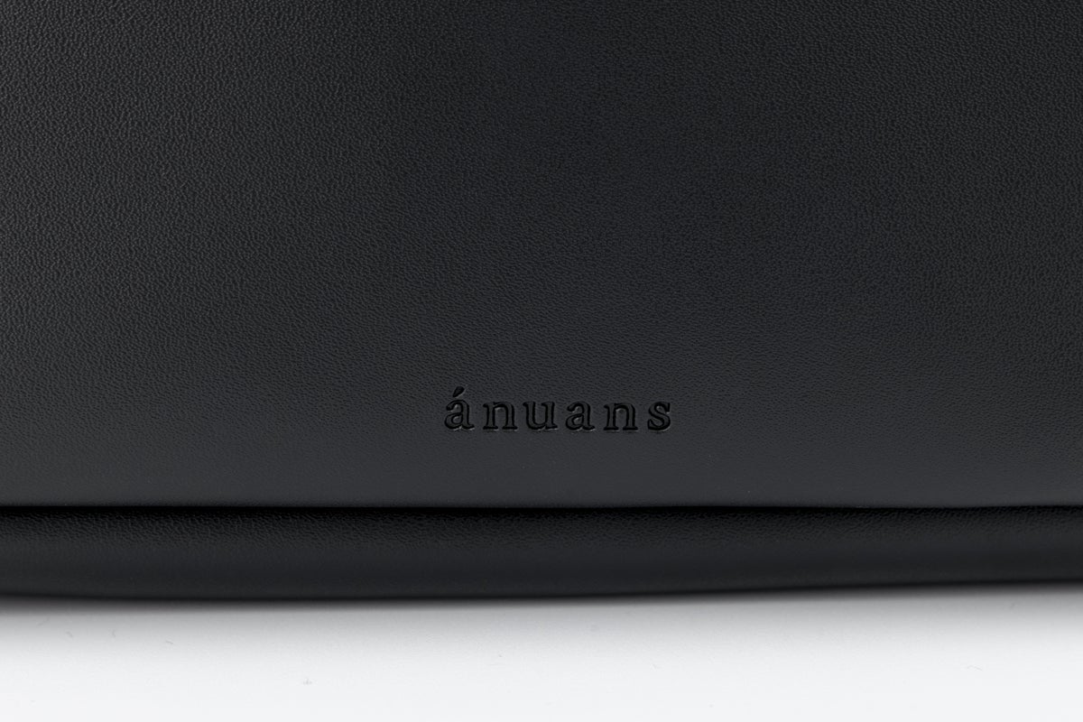 anuansのブランドロゴをさりげなく型押しし、ミニマルなのに存在感のあるルックスに。持ち手には気品あるハンドルをあしらい、エレガントなディテールをプラス。