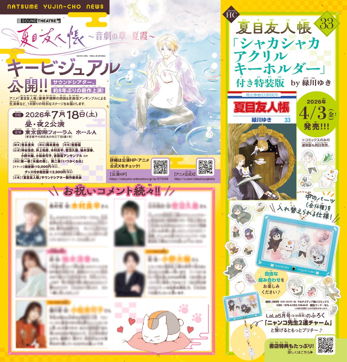 いよいよ4/3発売『夏目友人帳』(緑川ゆき)最新刊33巻「シャカシャカアクリルキーホルダー」付き特装版