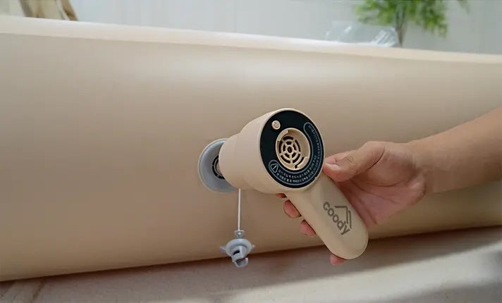 coodyのエアテントは、ポンプで空気を入れるだけの簡単設営。初心者や女性でも安心して使え、広々とした快適空間で家族や友人とゆったり過ごせます。設営や撤収の手間を減らし、大切な人との時間を存分に楽しめるのも魅力。さらに、耐風・防水性に優れた高品質な素材を採用しているため、どんな天候でも快適に過ごせます。上質なグランピングスタイルを気軽に体験し、特別な思い出を。