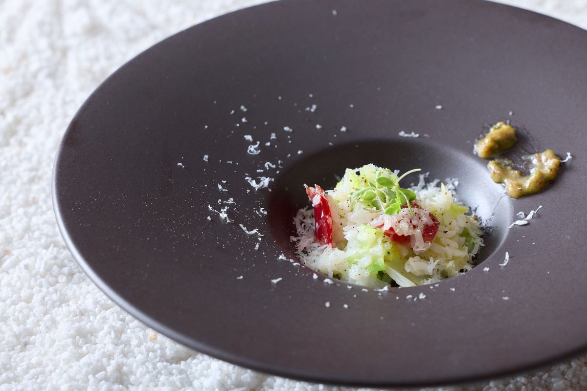 ▲【御飯】 「あいちのかおり」と春キャベツのリゾット 蕗の臺味噌のアクセント