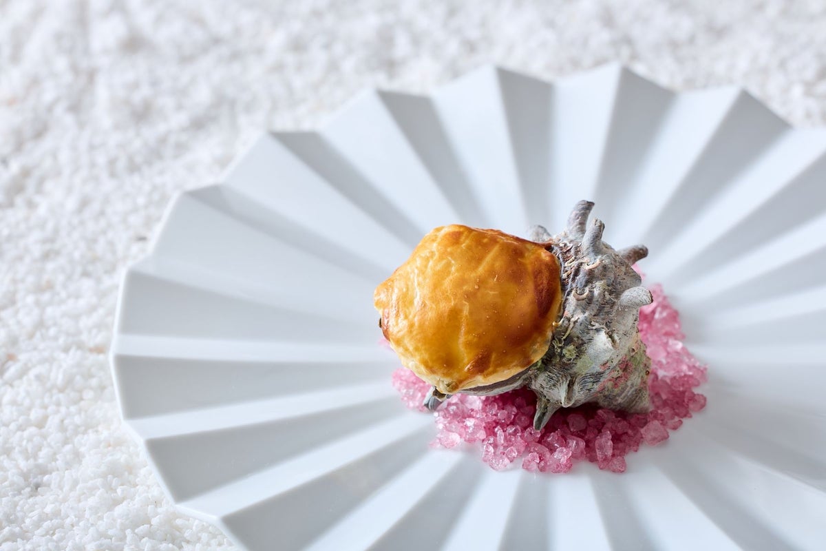 【前菜2.】 栄螺のパイ包み焼き 西京味噌と黒一味の風味で