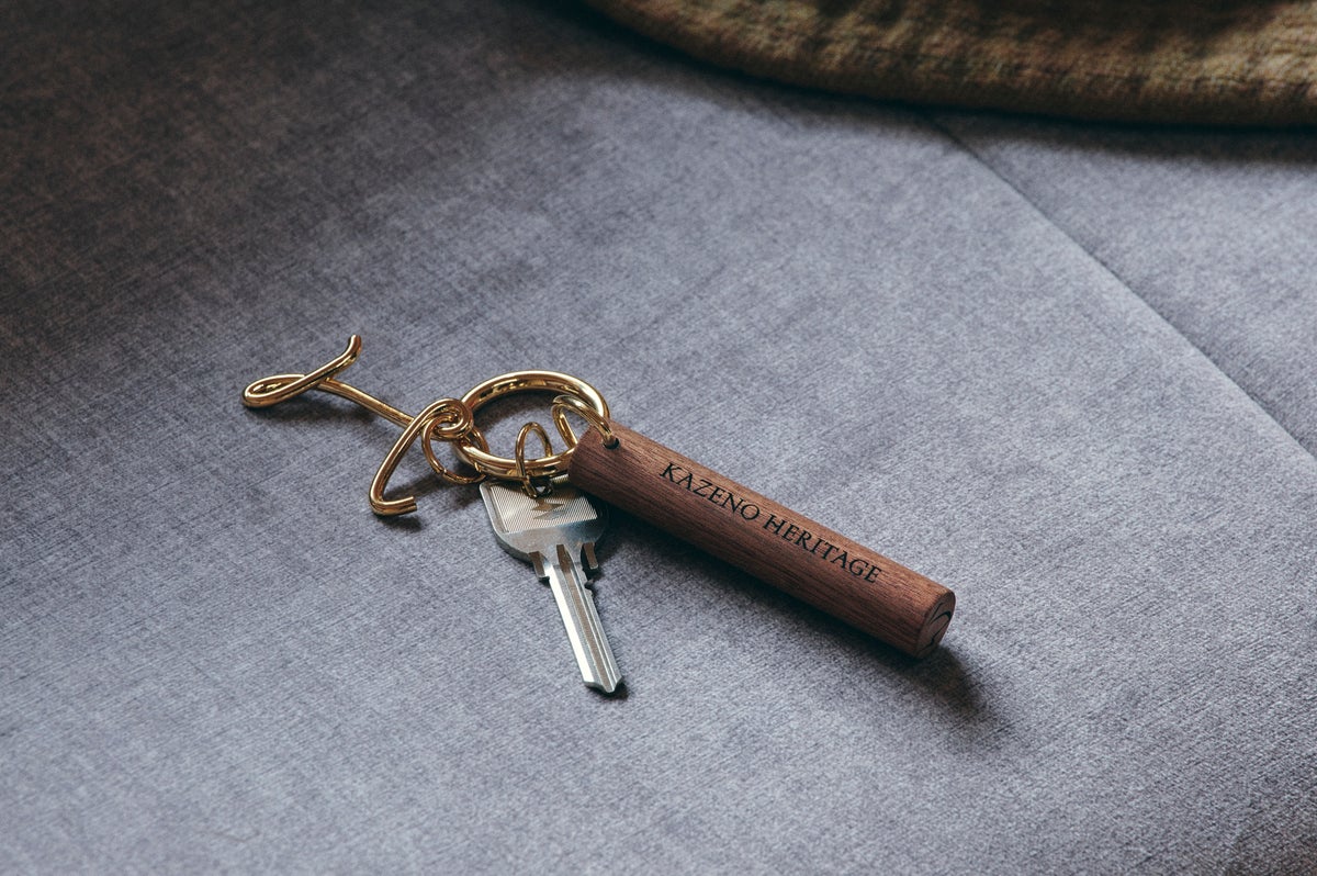 ブランドシンボルの「H」をあしらった、真鍮製のオリジナルキーチャーム。部屋名の「ひ」「ふ」「み」もさりげなく記しています。