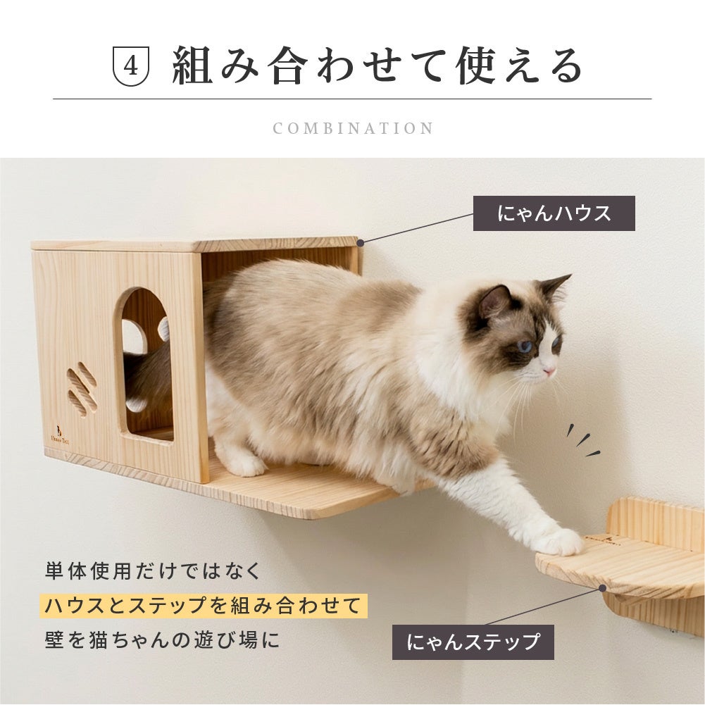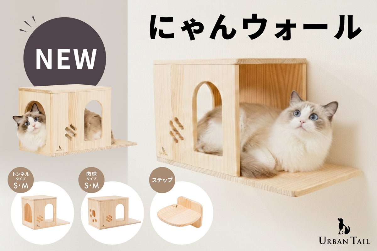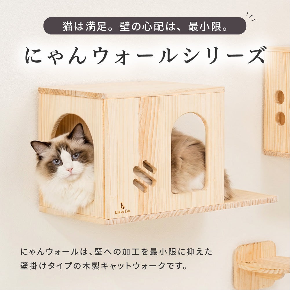 壁を活かして猫の居場所をつくれる新シリーズ「にゃんウォール」が新登場。賃貸住宅にも配慮した設計と、空間に自然と馴染む木製デザインで、猫のくつろぎと人の暮らし、そのどちらにも寄り添う住空間を提案します。