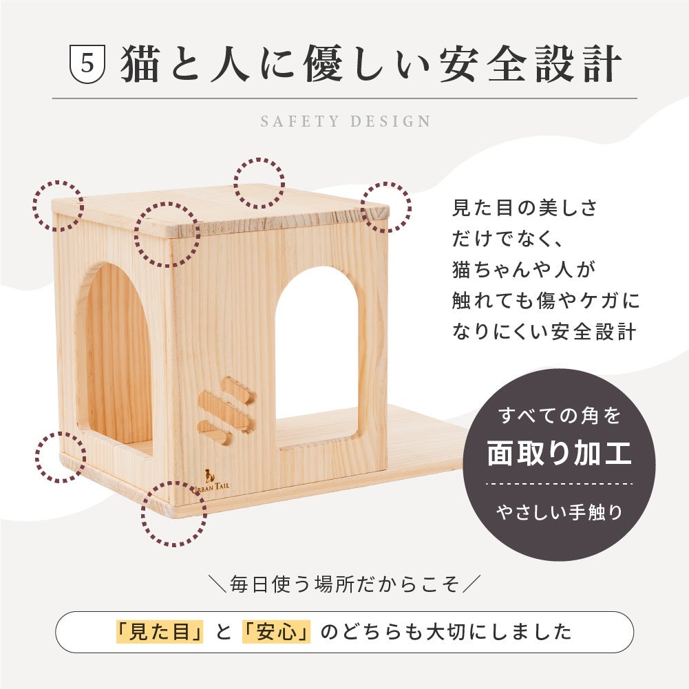 見た目の美しさだけでなく、猫や人が触れてもケガをしにくい設計を採用。