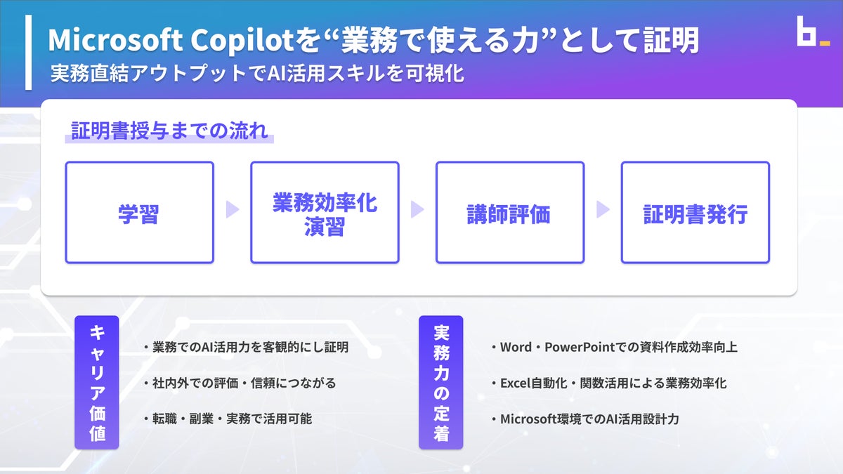 【バイテック生成AIオンラインスクール】 Microsoft Copilotを“業務で使える力”として証明 「Copilot スキル証明課題」を提供開始