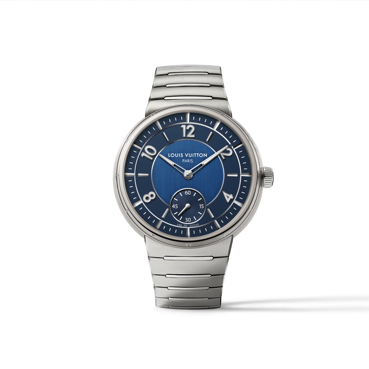 また、ネイビーの文字盤を搭載したスティール製のウォッチ「タンブール オトマティック スティール ブルー」も着用しました。