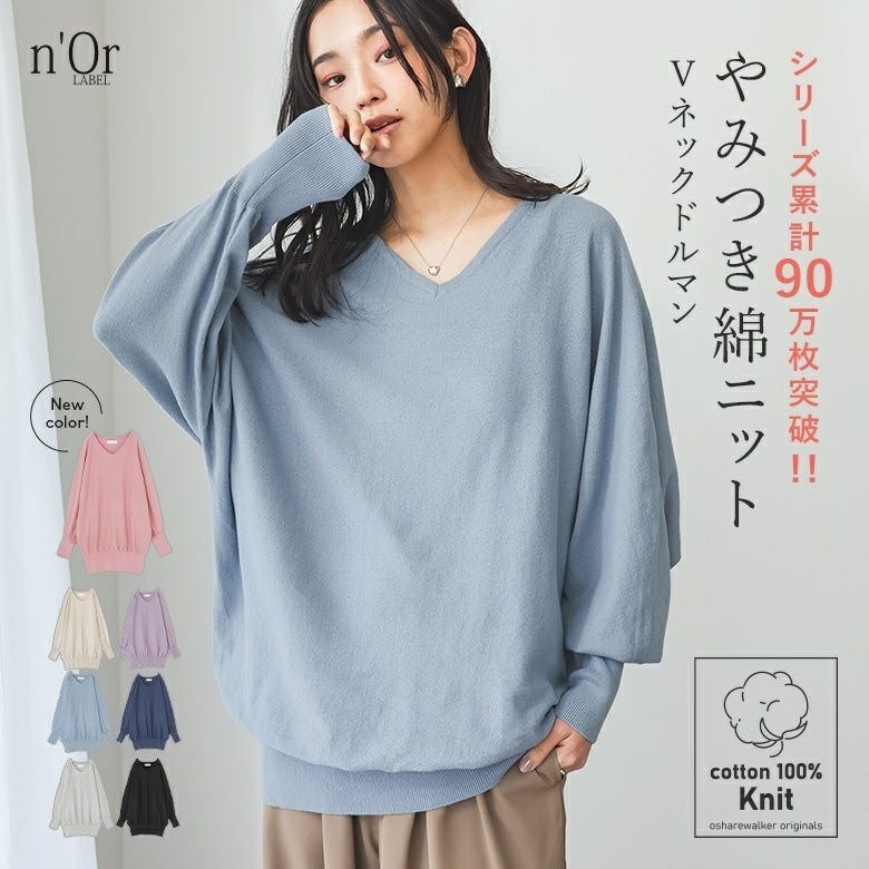 n'OrLABELゆるやかVネックシンプル綿ニット ¥3,590 ⇒ 2/25まで¥3,000