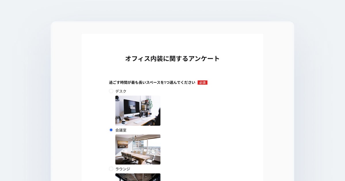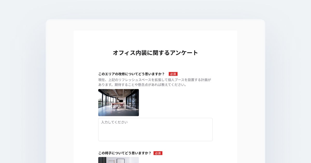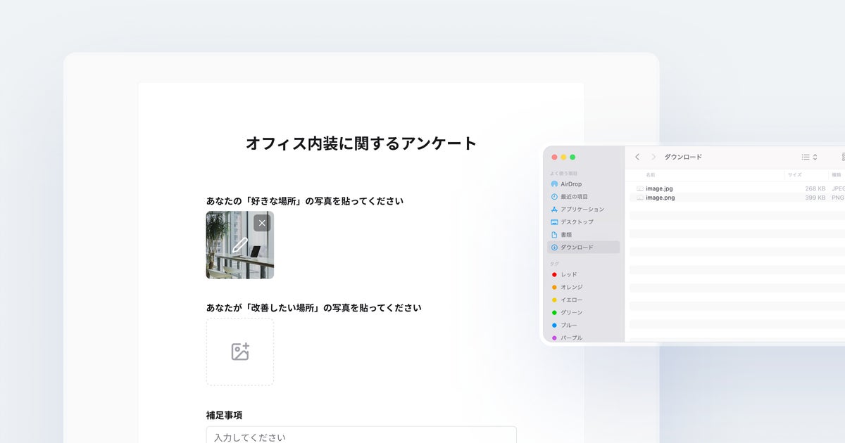 フォームの質問項目に画像を添付できるようになりました。テキストだけでは伝わりにくい情報を視覚的に補完することで、回答者の理解を助け、より答えやすいフォームを作成できます。