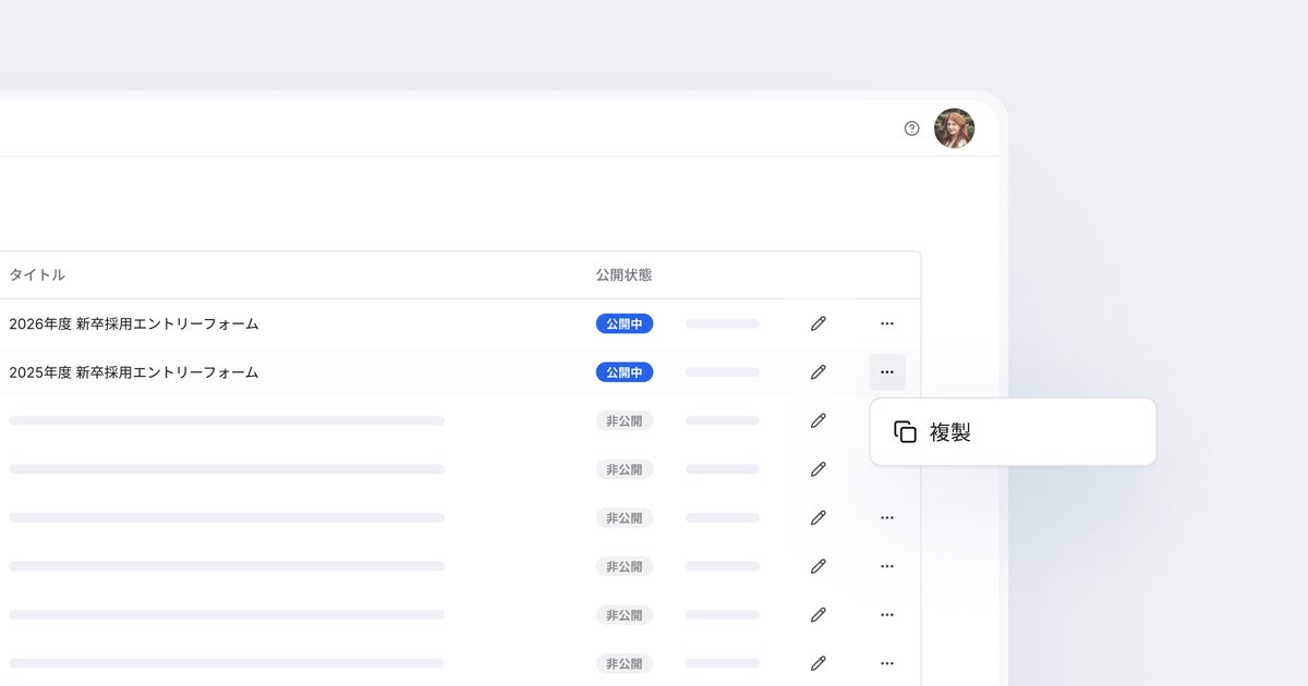 一度作成したフォームをベースに、新しいフォームをコピーして作成できるようになりました。定期的なイベントや、類似した設問のフォームを複数運用する場合の工数が大幅に削減できます。