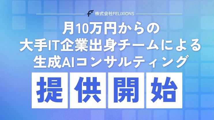 AIソリューション開発を展開する株式会社FELIXIONS(本社:東京都千代田区、代表取締役:沖 駿吾)は、生成AIの導入から精度を左右するデータ基盤構築など、大手IT企業で培った知見・高速なプロトタイプ制作を格安で提供開始いたします。