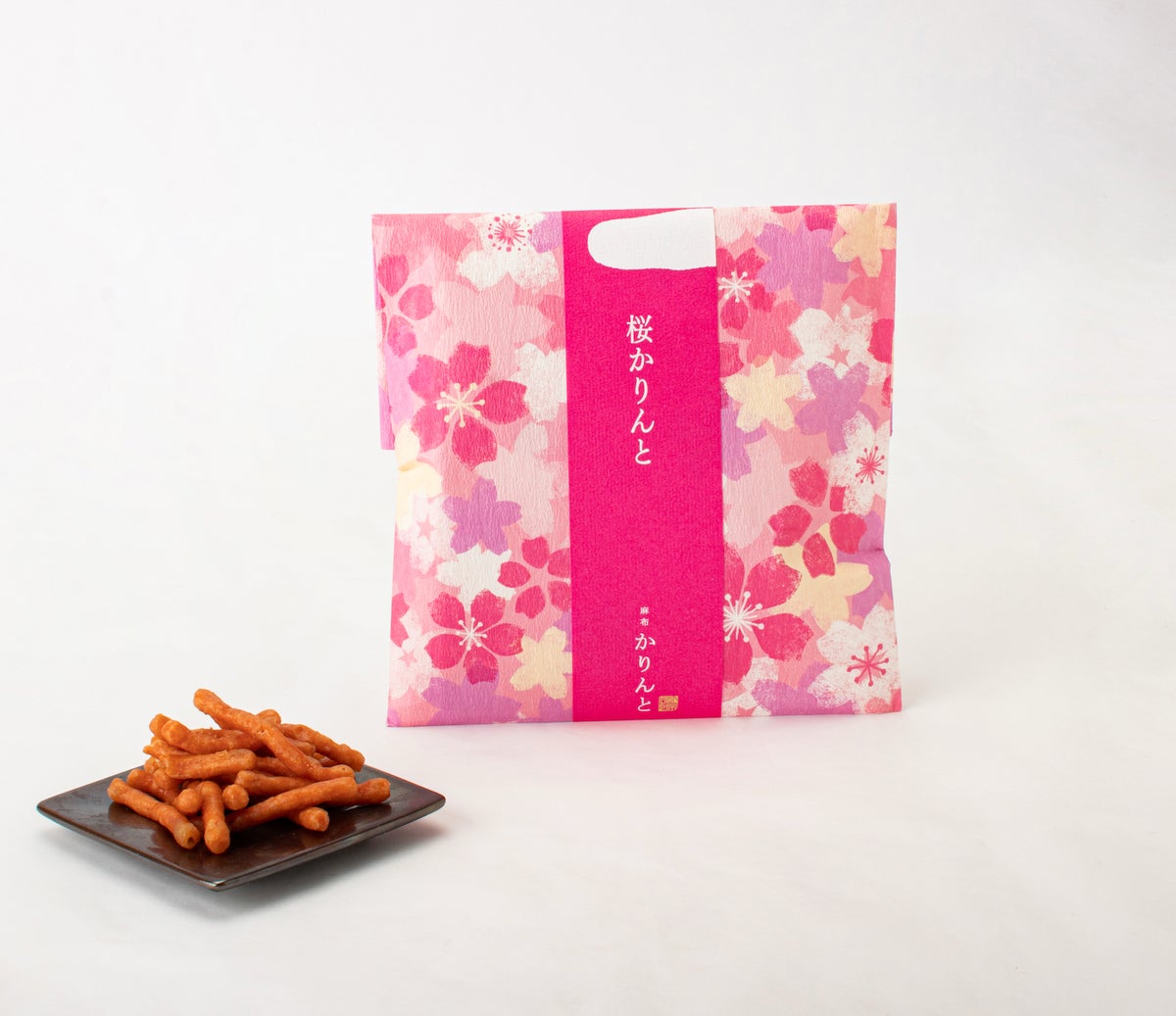 桜かりんと桜葉を使用したかりんとうはひとつ食べると春の香りが広がり、優しさと安らぎを感じさせます。春らしいピンク色の限定パッケージです。