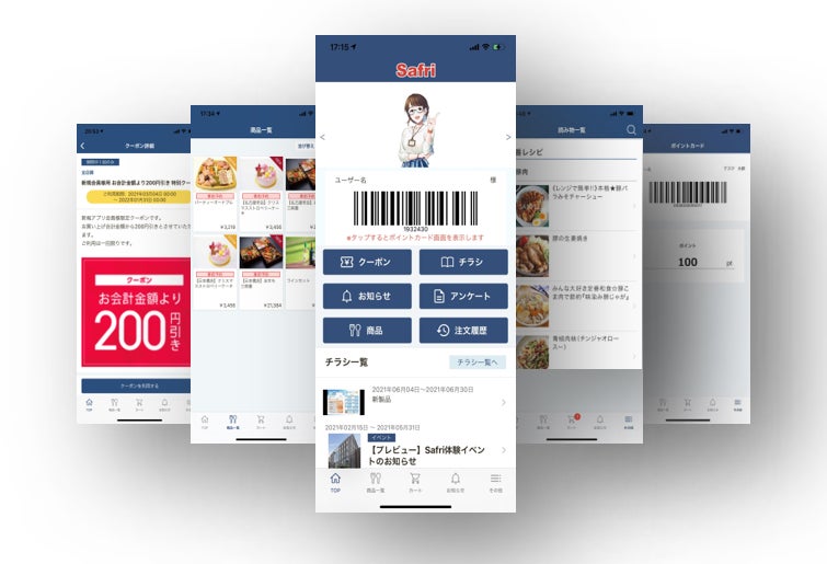 「Safri」は、スーパーマーケットに特化したスマホ販促アプリです。会員管理、お知らせ配信、クーポン配信、商品予約、スクラッチ、スタンプ、リテールメディアなどの機能からPOS、ポイント、電子マネー、クレジットチャージ、顧客分析の外部システムとの連携まで、さまざまな機能と伴走型サポート