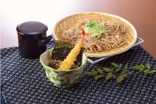 サガミ自慢の大海老天ぷらと、店内製麺のそばを、ごま油香るアツアツなつゆにつけて召し上がりください。