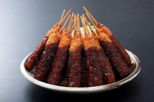 揚げたてアツアツ、衣はサクサク。噛めばお肉の旨みが広がる、サガミ自慢の「串かつ」です。特製「味噌」または「ソース」でお楽しみください。1本からご注文いただけます。