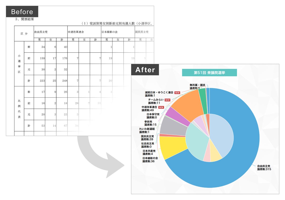 情報設計とクリエイティブで世の中の”いいコト”をわかりやすく伝える株式会社エコンテ(本社:東京都渋谷区、代表取締役:滝日伴則 以下「エコンテ」)は、衆院選の各党議席数を動的なWebコンテンツとして表現した、体験型インフォグラフィック「衆院選の歴史」を最新データに更新し、公開しました。
