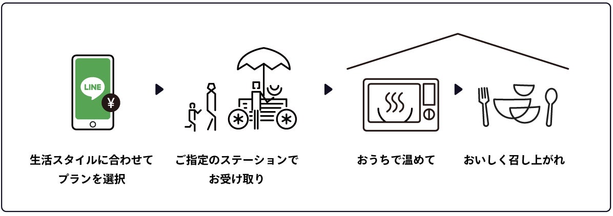 注文は全てLINEで完結し、ご家庭に合わせた頻度と量で、日替わりの家庭料理を受け取ることができます。当日の注文も数量限定で各日7:00~13:00まで承っており、一食分から気軽にご利用いただけます。