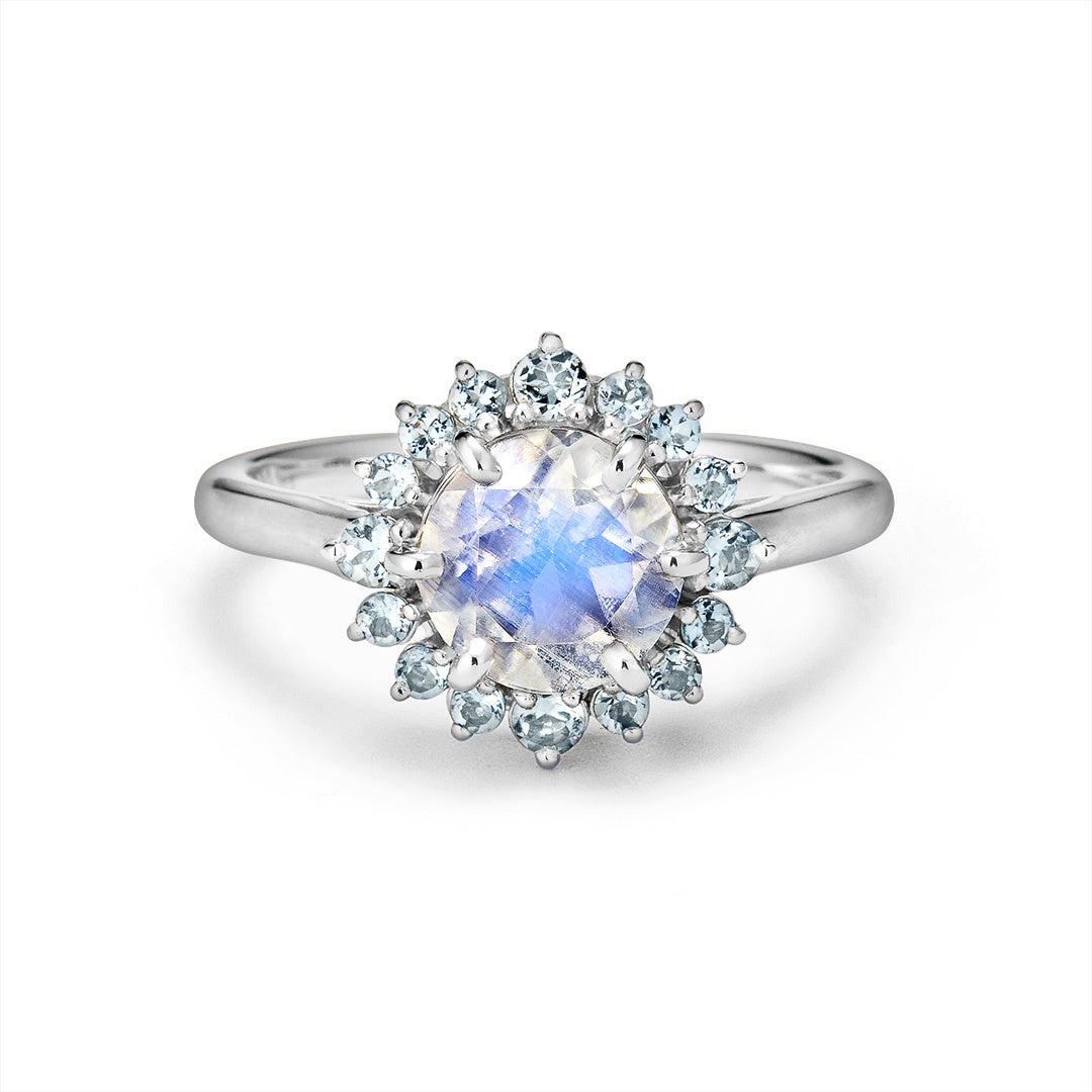 ブルームーンストーン×アクアマリン K18/PTリング・フロレゾン ¥374,000(税込)
