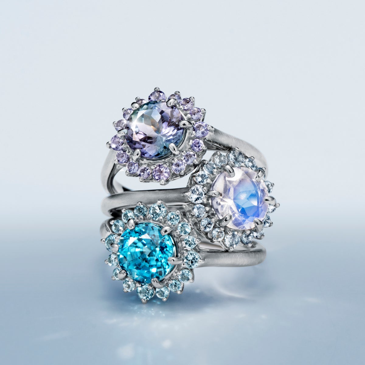 ブルージルコン×ブルートパーズ K18/PTリング・フロレゾン ¥462,000(税込)