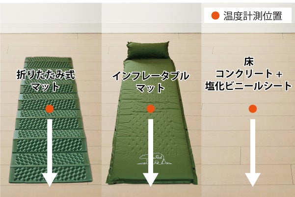 という3つの環境を用意し、複数人が入れ替わりながら横になり、背中の温度を比較しています。